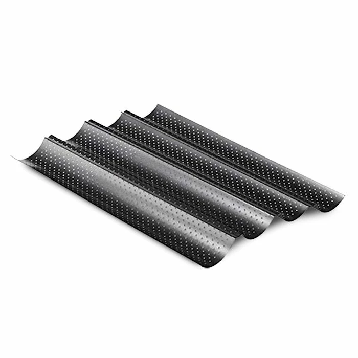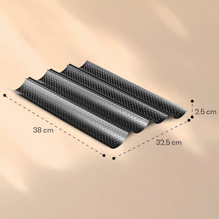 Le plaisir du pain le plus fin à la française : avec la plaque à baguette raffinée de Feelino by Klarstein, vous pouvez dès maintenant cuire vous-même de délicieuses baguettes de pain blanc tout juste sorties du four. La plaque pâtissière est formée de plusieurs creux dans lesquels la pâte à pain s’incurve pendant la cuisson pour former la baguette originale. Fabriqué en acier au carbone de haute qualité, le moule à baguette vous offre de nombreux avantages : il dispose d’un bon revêtement anti-adhésif, convient aux aliments et est facile à nettoyer. De plus, la plaque à pain est équipée d’une perforation spéciale qui assure une répartition optimale de la chaleur et donc des résultats de cuisson très uniformes. Cela confère également à votre baguette fraîche une croûte uniformément brune et croustillante. Grâce aux creux préformées de la plaque à baguettes, vous pouvez préparer plusieurs baguettes fraîches et croustillantes à la fois.