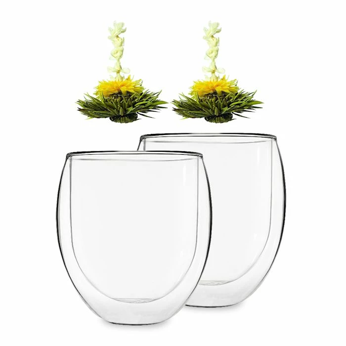 - Art du verre & ivresse des fleurs : verre à double paroi avec fleur de thé