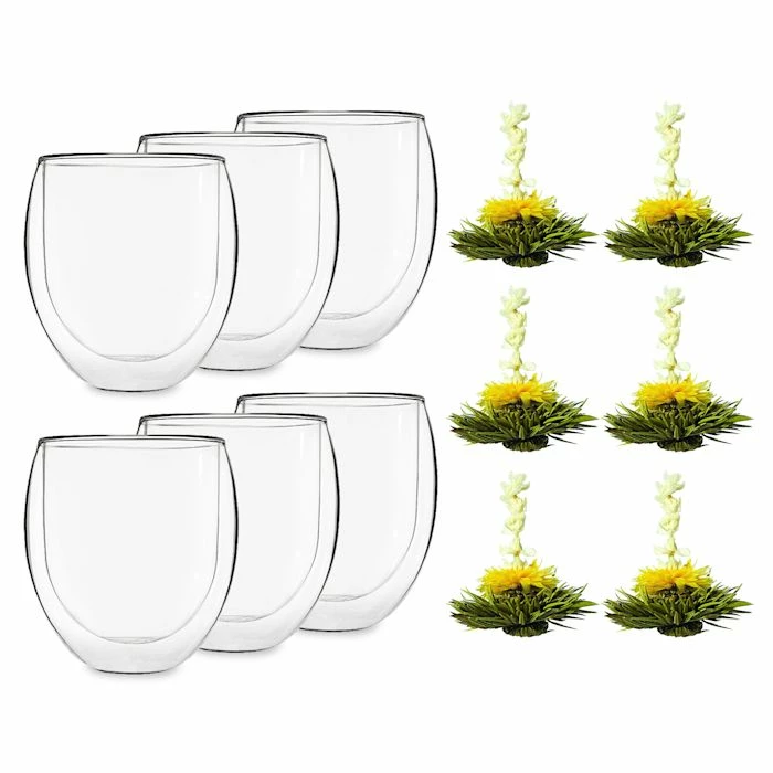 - Art du verre & ivresse des fleurs : verre à double paroi avec fleur de thé