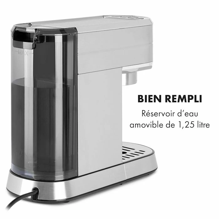 - Bien rempli : réservoir d’eau amovible de 1,25 litre