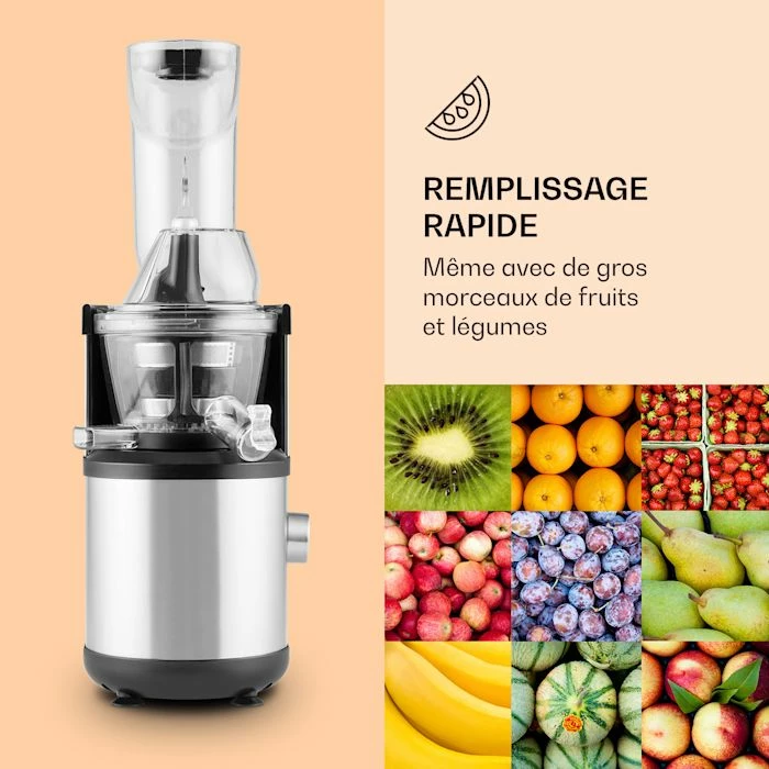 - Remplissage rapide : également avec de plus gros morceaux de fruits et légumes