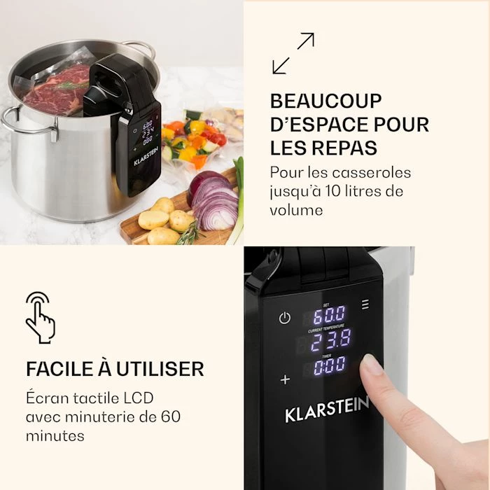 Vivre consciemment signifie cuisiner consciemment, manger consciemment. Le Klarstein Quickstick Free cuiseur Sous Vide est un appareil de précision conforme à cette philosophie.