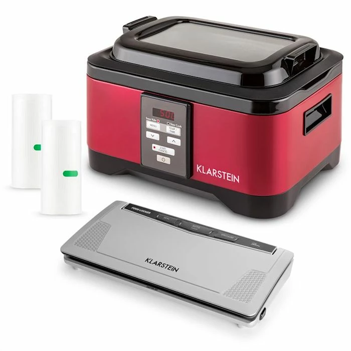 Le parfait trio sous vide : Foodlocker Slim, Tastemaker et rouleau de sacs sous vide. Le set Tastemaker Sous Vide FoodLocker Klarstein assure le coup pour une cuisine saine et fait de la cuisine de précision un jeu d’enfant.