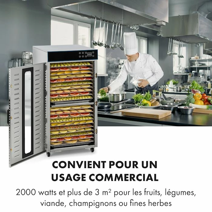 - Adapté à un usage commercial : 2000 watts et plus de 3 m² de place pour les fruits, les légumes, la viande, les champignons ou les fines herbes
