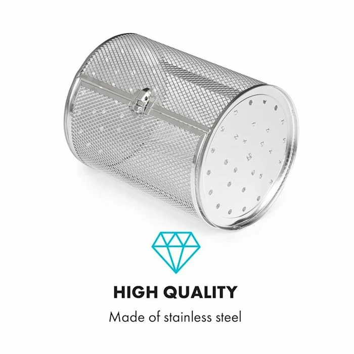 Le panier rotatif Klarstein fait passer la friteuse à air chaud AeroVital Cube Chef au niveau supérieur. Faites-vous plaisir ainsi qu’à vos proches avec des frites croustillantes et de délicieux pop-corn ou faites griller vos propres arachides, amandes ou même grains de café pour le plaisir d’un café torréfié particulièrement frais.