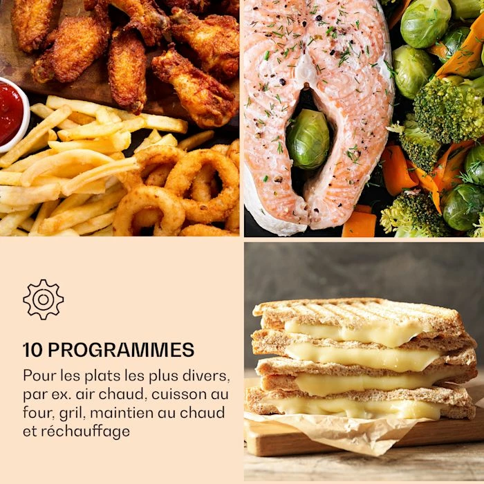 - 10 programmes sélectionnables avec temps de cuisson et température préréglés et réglables manuellement