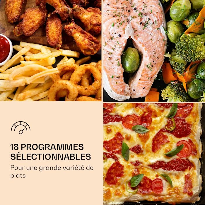 - 18 programmes sélectionnables : pour les plats les plus divers