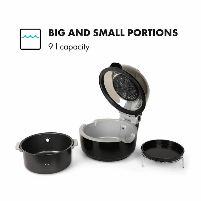 La Klarstein VitAir Fryer est une friteuse à air chaud futuriste qui révolutionnera les traditions culinaires et condamnera les friteuses, grills et fours à l’inaction. Elle réunit en effet tous ces appareils en un seul appareil multifonctions.