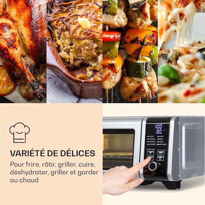 - 8 fonctions : Pour frire, rôtir, griller, cuire, déshydrater, griller et garder au chaud