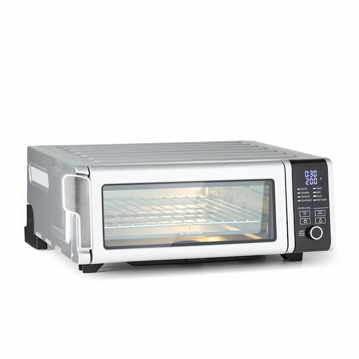 La friteuse à air chaud Klarstein Vita-Crisp est un appareil mince et polyvalent dans la cuisine. Ses 8 fonctions – friture, cuisson à la poêle, grillage, déshydratation, toasts, cuisson au four, maintien au chaud et mode pizza – se règlent facilement sur l’écran frontal avec bouton rotatif. Le lot de quatre accessoires fournit tout ce qu’il vous faut pour des snacks chauds et croustillants. Grâce à son intérieur spacieux, la Vita-Crisp accueille facilement des pizzas de 33 cm. Le nettoyage est super facile grâce à une construction intelligente – le fond est complètement rabattable.