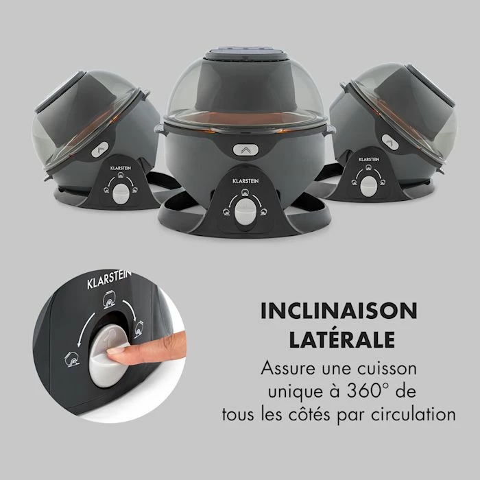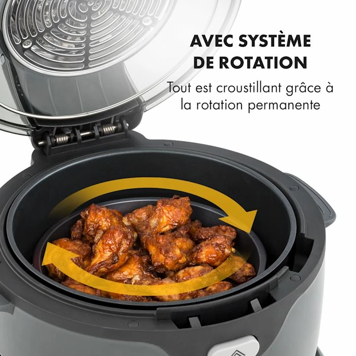 - Système de rotation à 360° : aliments croustillants de tous les côtés grâce à la rotation permanente