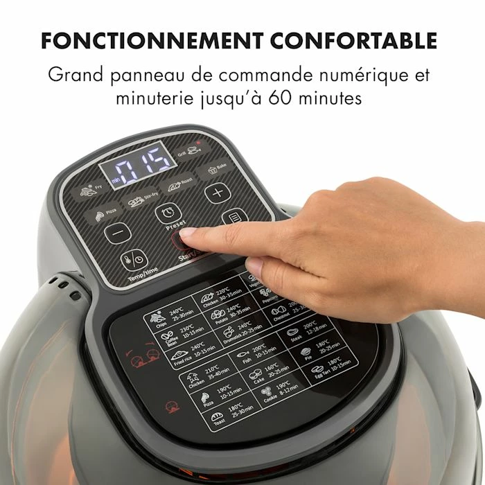 - Utilisation confortable : grand panneau de commande numérique et minuterie jusqu’à 60 minutes
