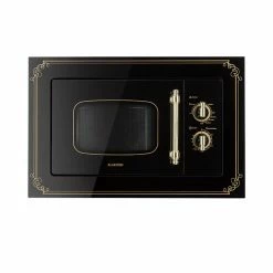 Le micro ondes à encastrer Klarstein Victoria 20 avec son cadre de montage fourni est un puissant multi-talent pour les célibataires et les ménages qui réunit en un seul appareil multifonction le micro ondes et le grill. Le micro ondes de 800 W et son volume de cuisson de 20 litres en font un appareil parfaitement adapté aux exigences de notre époque où nous sommes toujours pressés : avec ses 5 niveaux vous pouvez facilement régler la puissance d’un seul geste, pour réchauffer le plus rapidement possible des repas préparés, cuire des plats ou maintenir au chaud des plats déjà prêts. Pour obtenir des résultats parfaits sur le plateau de verre de Ø 24,5 cm, vous pouvez également régler la durée de cuisson littéralement en un tournemain. La durée écoulée, le micro ondes à encastrer s’arrête et se signale à vous par un bip sonore. De cette façon, les plats préparés ne seront pas oubliés et les estomacs grognons seront remplis dans les temps. De plus, le Victoria 20 possède un grill de 1000 W qui apporte grâce à sa grille de cuisson fournie l’aspect idéalement grillé à vos saucisses et viandes, le plus rapidement qui soit : sélectionnez tout simplement la fonction grill ou bien la bonne combinaison de grill et de micro ondes par la fonction QuickSelect et commencez à profiter du plaisir des grésillements ! Pour décongeler les aliments surgelés, le micro ondes à encastrer Klarstein offre en plus une fonction décongélation qui rend aussi facile qu’un jeu d’enfant la décongélation de la viande, des volailles ou des fruits de mer, sans risque de les cuire involontairement. A l’intérieur de l’appareil scintille un intérieur SimpleClean en acier inoxydable, particulièrement résistant et facile à nettoyer. Le micro-ondes à encastrer Victoria 20 fait également honneur à son nom de l’extérieur car il dispose d’un élégant boîtier rétro style 19 ème siècle qui se fondra dans n’importe quel style de cuisine moderne ou classique.