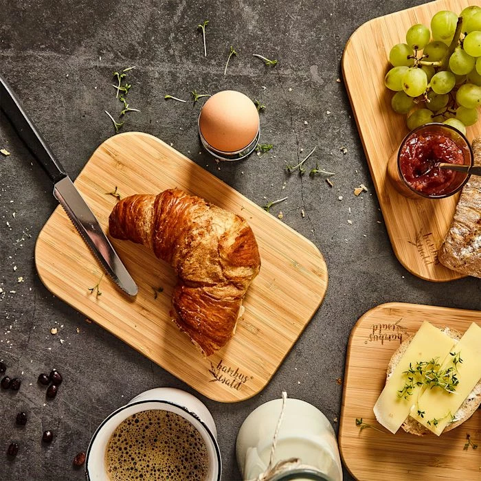 - comme planches à découper et plats pour le petit-déjeuner, les collations, les amuse-gueules, le goûter et le dîner