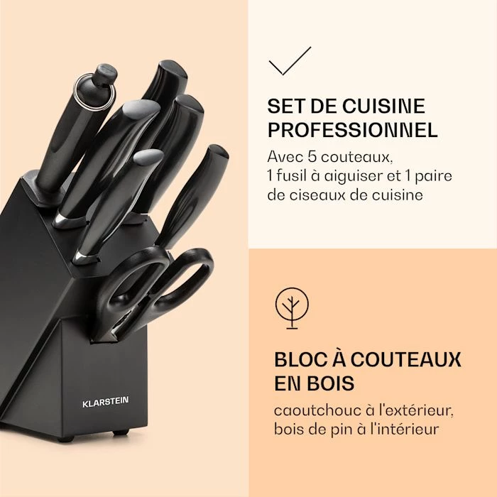- Set de cuisine professionnel : avec 5 couteaux, 1 fusil à aiguiser et 1 paire de ciseaux de cuisine