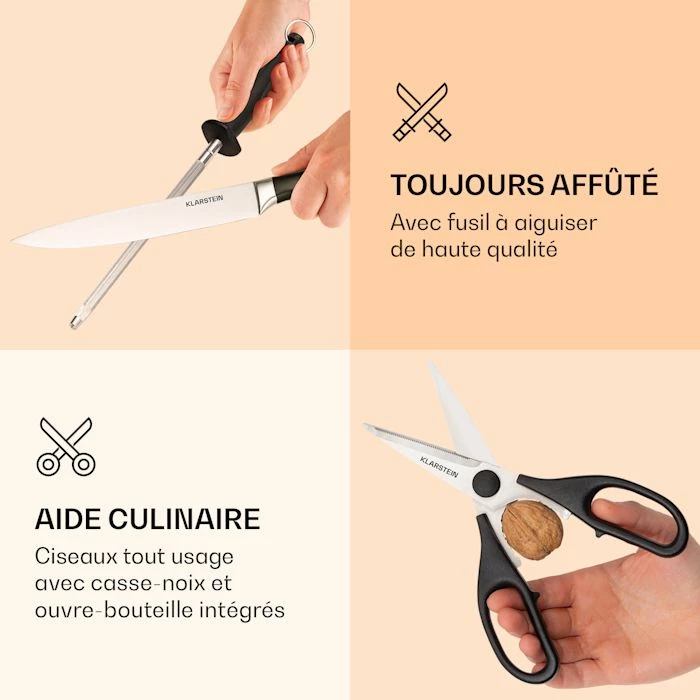 - Toujours affûté : y compris un fusil à aiguiser de haute qualité