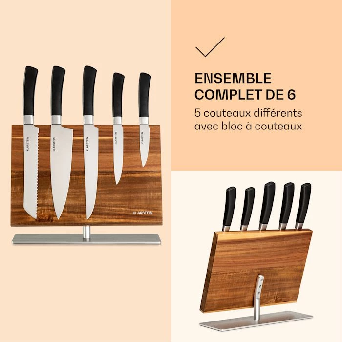 - Vaste set de 6 couteaux : 5 couteaux différents avec bloc à couteaux