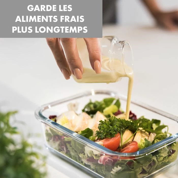- Nettoyage facile : boîtes compatibles lave-vaisselle et couvercles avec système d’étanchéité amovible