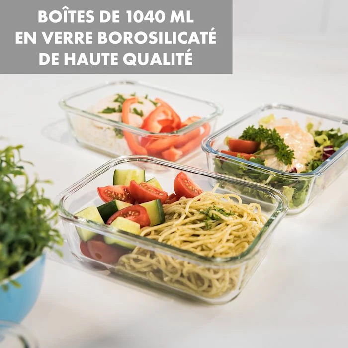 - Elégantes : boîtes de conservation élégantes et durables en verre borosilicaté durable et couvercles assortis