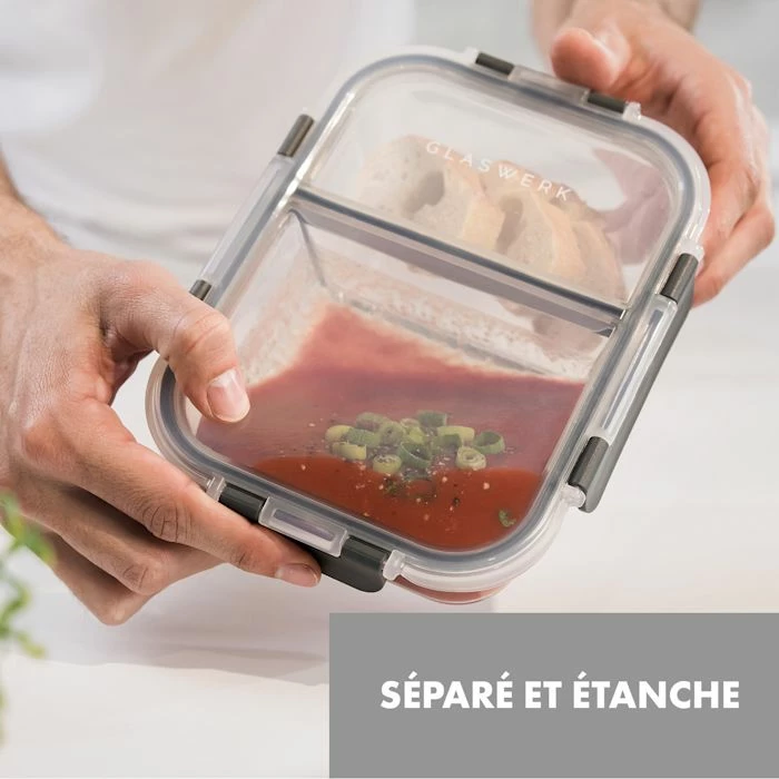 - Elégantes : boîtes de conservation élégantes et durables en verre borosilicaté durable avec deux compartiments séparés et couvercles assortis