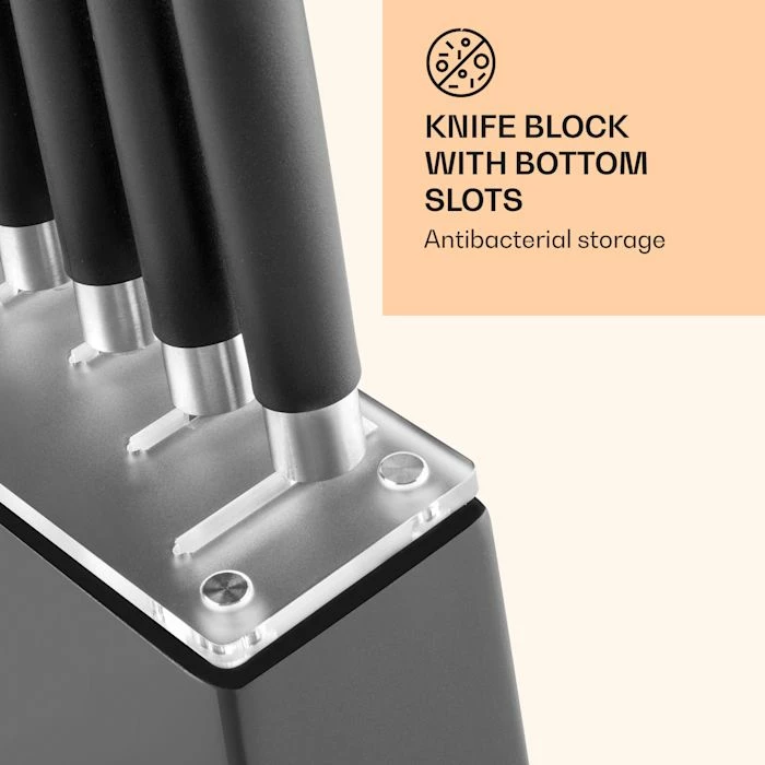 - Hygiène de cuisine : les fentes au fond du bloc de couteaux empêchent la formation de bactéries.