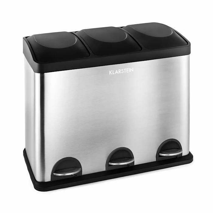- Poubelle à pédales en inox avec un volume total de 45 litres