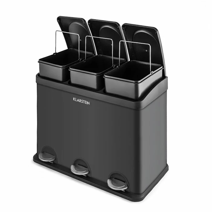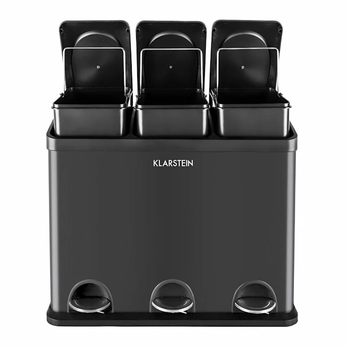 Pour un recyclage facile : la poubelle à pédale Ökosystem de Klarstein avale tous vos déchets sans problème et les garde bien séparés dans ses trois compartiments.