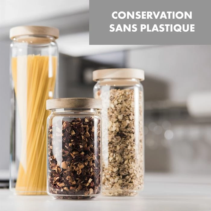 - Élégants : bocaux de conservation élégants et durables de 0,75, 1,1 et 1,5 litre de capacité en verre borosilicaté résistant avec couvercle assorti