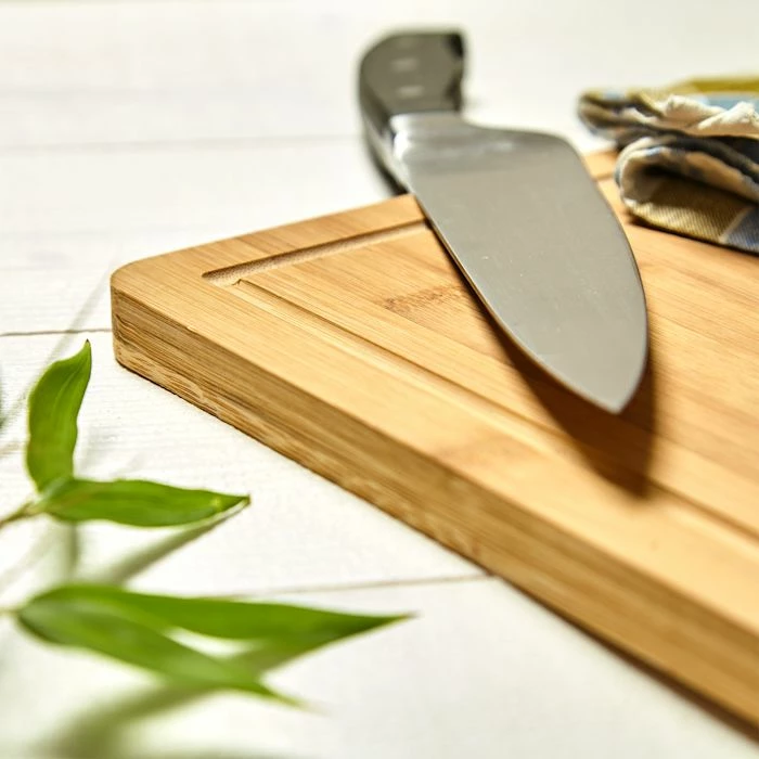 - Bois de bambou chinois : petite planche à découper de haute qualité avec rainure à jus