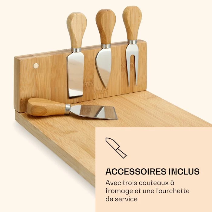 - Accessoires inclus : avec trois couteaux à fromage et une fourchette de service