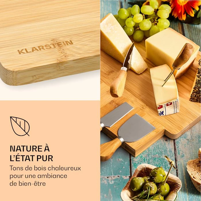 - Pour le fromage, les snacks ou le pain : plateau à fromage 100 % en bambou