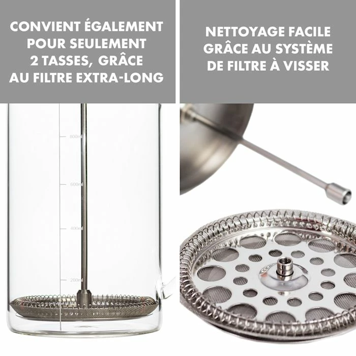 - Un plaisir de café élégant : cafetière de 1 litre de capacité pour 2 à 5 tasses max.