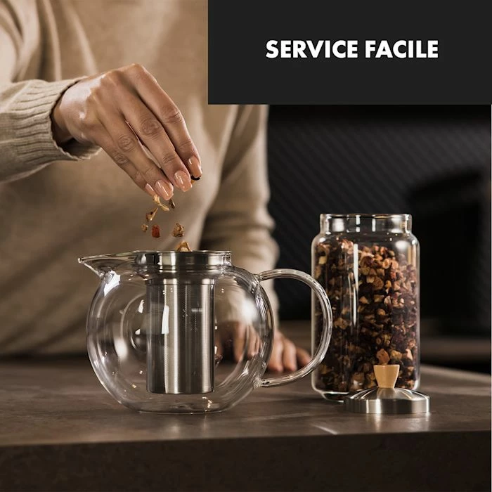 - Facile à nettoyer : composants en inox amovibles à la main et théière en verre lavable au lave-vaisselle