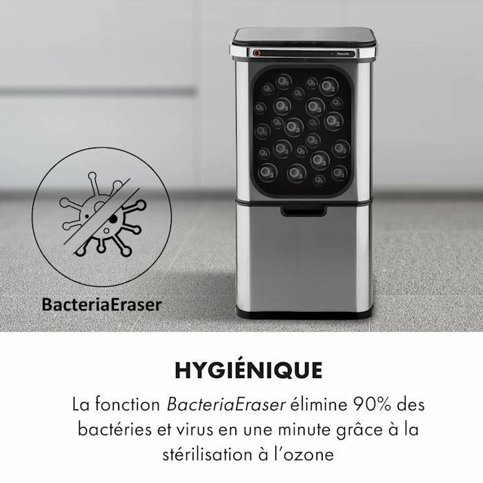 - Hygiénique: fonction BacteriaEraser permet d’éliminer 90% des bactéries et des virus en moins d’une minute grâce à la stérilisation à ozone
