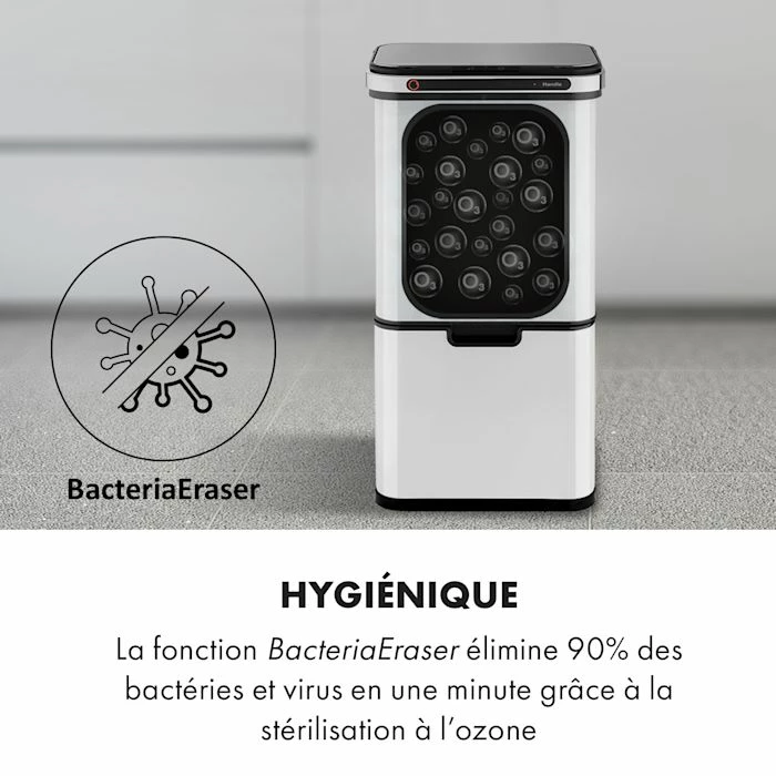 - Hygiénique: fonction BacteriaEraser permet d’éliminer 90% des bactéries et des virus en moins d’une minute grâce à la stérilisation à ozone