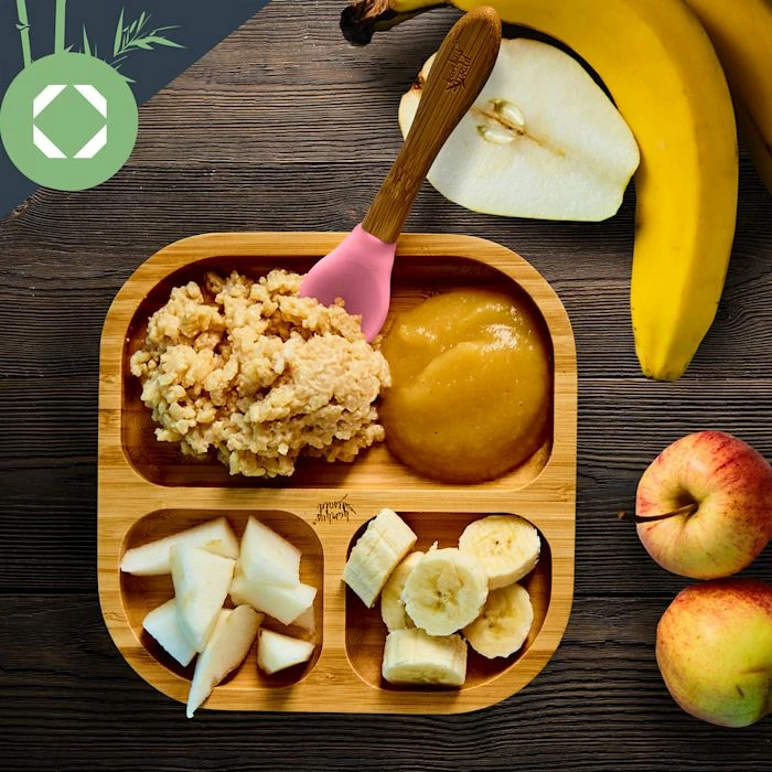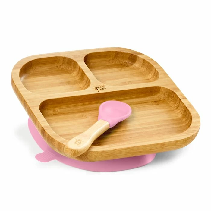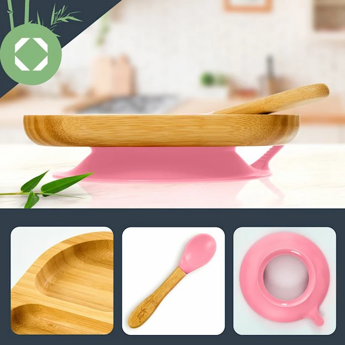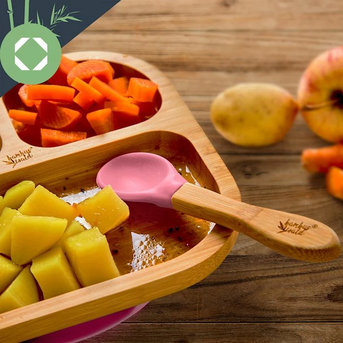 - Vaisselle pour enfants : assiette en bambou avec ventouse et cuillère