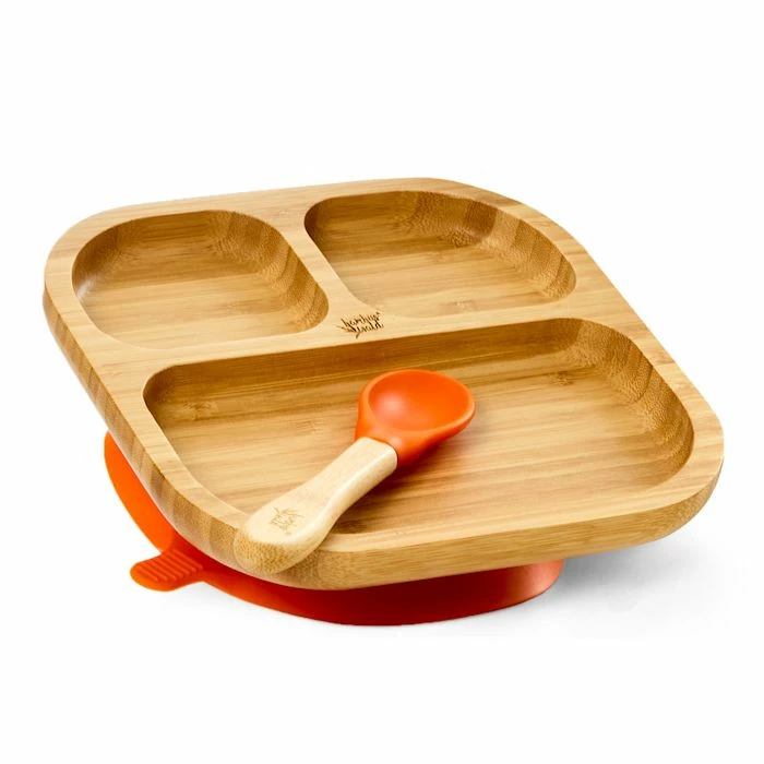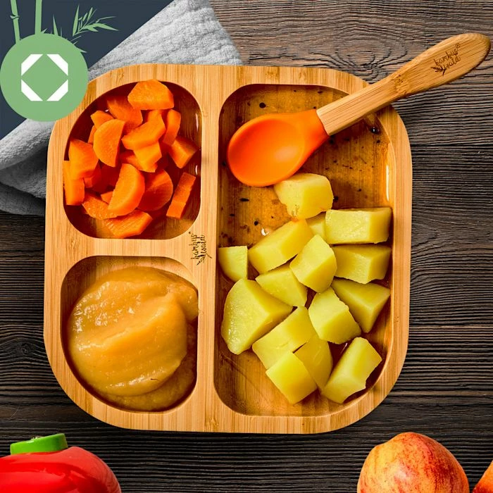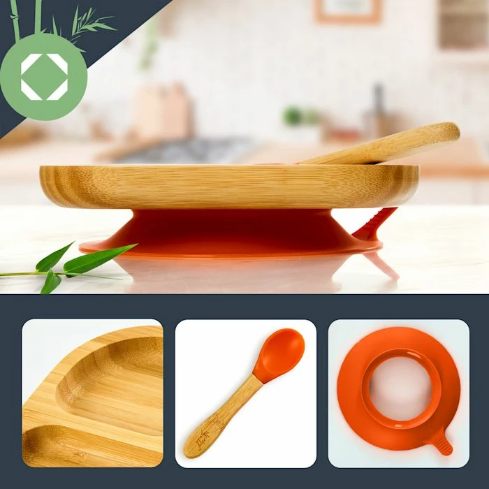 - Vaisselle pour enfants : assiette en bambou avec ventouse et cuillère