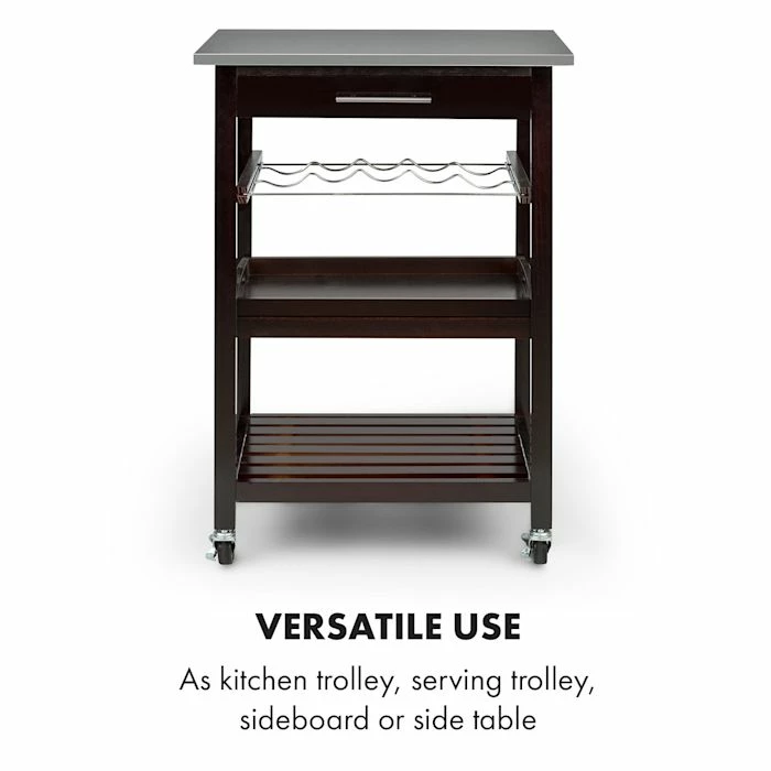 - Polyvalent : utilisable comme chariot de cuisine, chariot de service, buffet ou table d’appoint