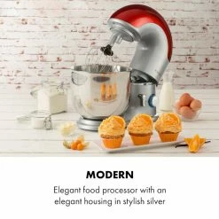 Élégant jusqu’au dernier tour et incroyablement fort en même temps. Il est très facile de s’attaquer à la cuisine avec style avec les robots de cuisine Klarstein Bella Elegance. Avec 2000 watts de puissance et 6 vitesses, notre système agitateur planétaire répond à tous les défis de l’art du mélange moderne. Que ce soit de la pâte à pain, de la crème fouettée ou du gâteau marbré : dans le bol en acier inoxydable de 5,2 litres, mélangez tout parfaitement grâce à ses 3 crochets mélangeurs. Le design coloré de votre nouvelle Bella Elegance est également un point fort avec des applications en cuivre ou en argent pour plus d’éclat. Il reste ainsi la star de votre cuisine, même après usage !
