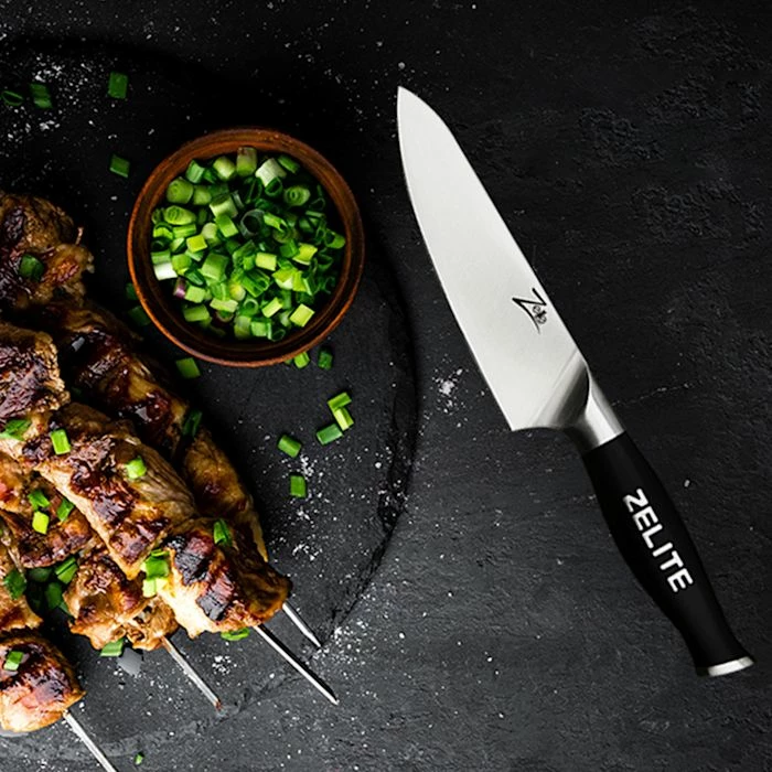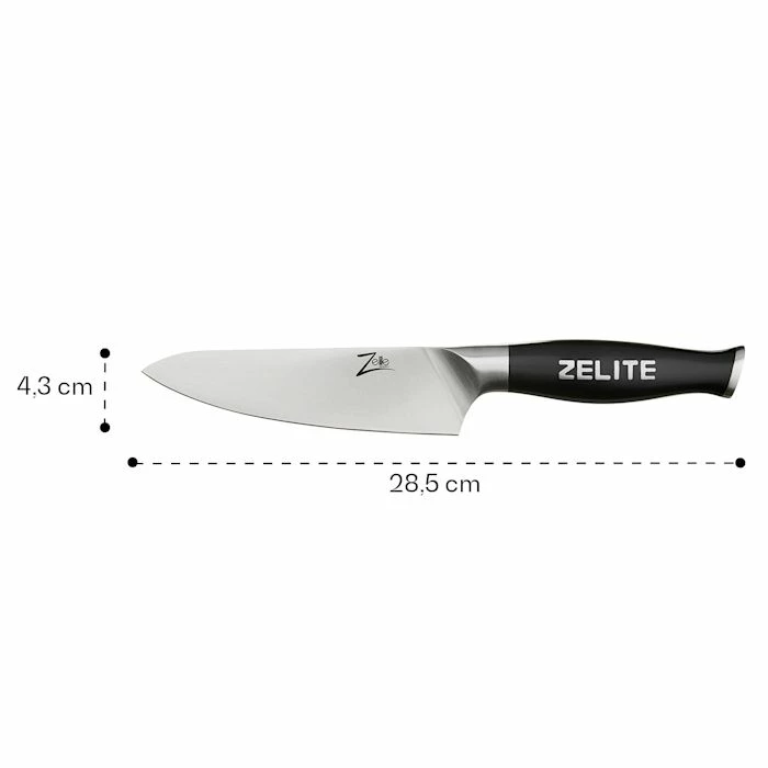 Les couteaux parfaits pour les chefs amateurs, les cuisiniers professionnels et tous ceux qui aiment les couteaux qui coupent ! La gamme de couteaux Zelite Infinity de Klarstein Comfort Pro associe un tranchant extrême, une qualité supérieure et une manipulation facile à un look élégant et permet de couper, hacher ou éplucher très facilement. Les lames en acier inoxydable de qualité allemande de Thyssenkrupp sont dures, flexibles et tranchantes comme des rasoirs. Grâce à la transition sans arêtes ni joints entre la lame et la mitre ainsi qu’aux manches ergonomiques parfaitement équilibrés, elles tiennent bien en main et permettent des coupes de précision parfaites.