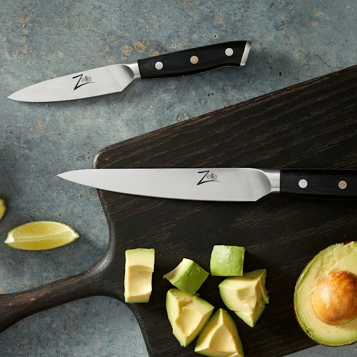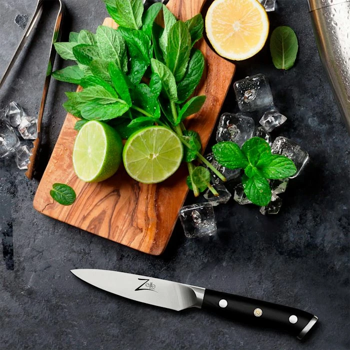 - Lame de 4″ : couteau de cuisine pour couper, éplucher et dénoyauter les légumes et les fruits