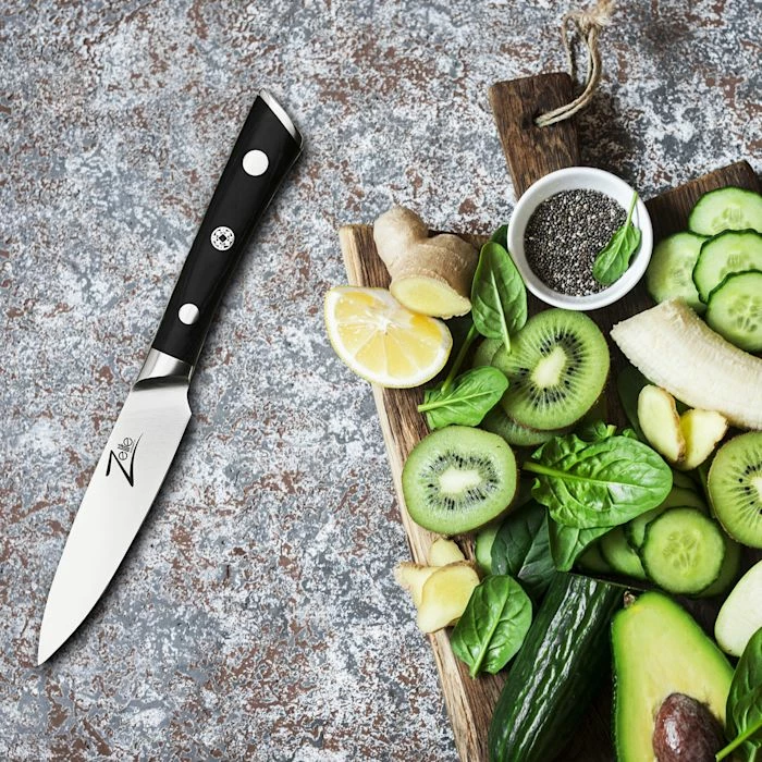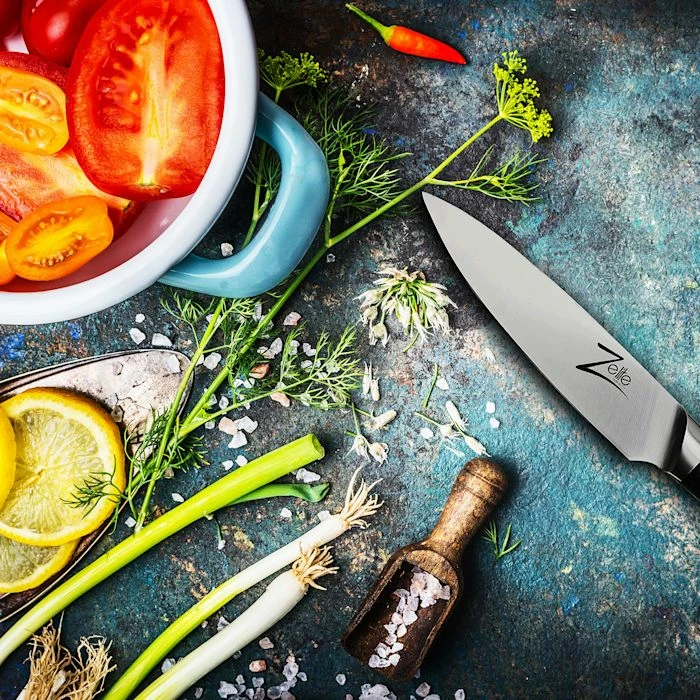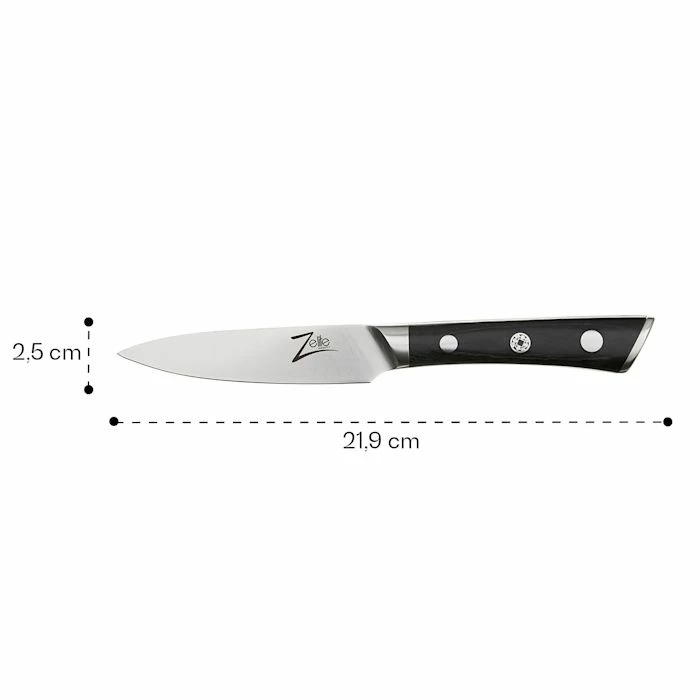 Mince, agile, tranchant comme un rasoir : si vous recherchez un outil léger et ultra-agile pour couper, tailler en dés et trancher, vous le trouverez dans la série de couteaux Razor-Edge de Zelite Infinity by Klarstein. Cette série moderne, d’inspiration japonaise, est fabriquée en acier inoxydable AUS-8 et est dotée des manches en bois de Pakka noir avec un rivet décoratif en mosaïque.