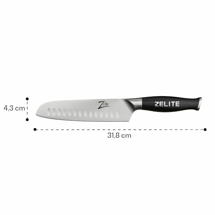 Les couteaux parfaits pour les chefs amateurs, les cuisiniers professionnels et tous ceux qui aiment les couteaux qui coupent ! La gamme de couteaux Zelite Infinity de Klarstein Comfort Pro associe un tranchant extrême, une qualité supérieure et une manipulation facile à un look élégant et permet de couper, hacher ou éplucher très facilement. Les lames en acier inoxydable de qualité allemande de Thyssenkrupp sont dures, flexibles et tranchantes comme des rasoirs. Grâce à la transition sans arêtes ni joints entre la lame et la mitre ainsi qu’aux manches ergonomiques parfaitement équilibrés, elles tiennent bien en main et permettent des coupes de précision parfaites.