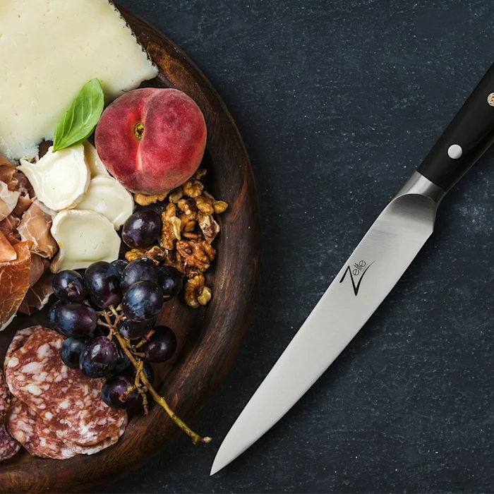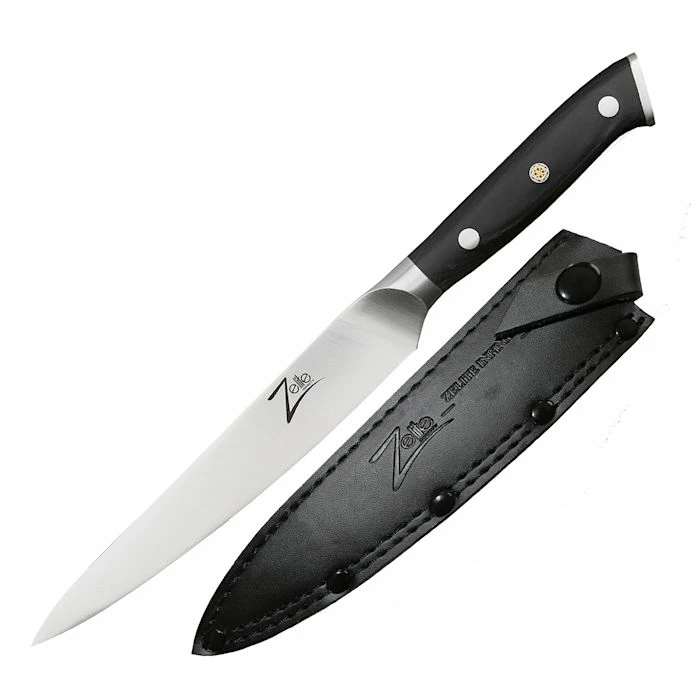 - Couteau universel 6″ : pour la viande, le poisson, la salade, les légumes ou les fines herbes